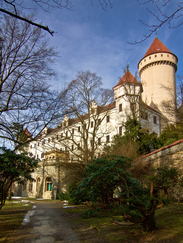 Место, где построен замок, называлось Конопиште с прадавних времен. Здесь выращивали коноплю, правда в мирных целях. И хозяин близлежащего имения, пражский епископ, решил здесь себе и замок построить. Как его назвать голову не ломали. И у этого замка было много хозяев. В 70-х годах XIX века его покупает наследник королевского трона Австро-Венгерской империи эрцгерцог Франц Фердинанд д’Эсте. И кто ж из нас не помнит одну из причин начала 1-ой мировой войны, которая началась после известных событий в Сараево, после убийства хозяина замка и его жены в 1914 г. В 1921 г. замок переходит в собственность Чехословацкой республики. Здесь есть, что посмотреть. Внешне он похож на романтическую резиденцию французского типа.
