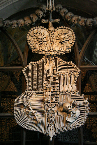 Костнице – хранилище людских останков. Костниц по всей Европе огромное количество. Манипуляция с человеческими костями не результат пренебрежительного невежества, а жесткая необходимость. Мала старушка Европа, мала размерами. Костниц много, но только в чешском Седлеце фантазия людская превратила бренные останки в подсвечники, дароносицы и прочие украшения интерьера крипты. Костнице в Седлеце – это не туристическая аттракцион, это место медитаций и размышления