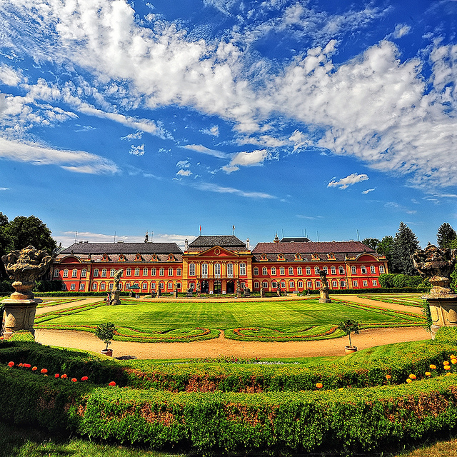Нынешнее здание, постройки 1745 – 1765 гг., отдаленно похоже на Версаль: утонченное рококо с фасадами французского барокко, прилегающий парк в французском стиле.