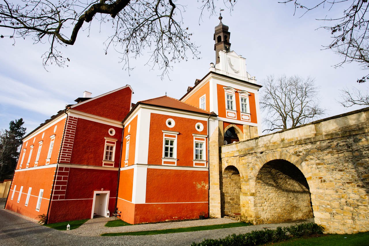 Всего в 22 км восточнее Праги, расположен барочный замок Шкворец, первое упоминание о котором датируется 1279 годом. От начальной крепости до наших дней сохранились лишь вырубленный в скале глубокий колодец и внешняя крепостная стена. Владельцы замка сменяли друг друга и, лишь попав в руки семьи Лихтенштейн, капитальным обустройством замка занялась Мария-Тереза Савойская. Был построен костел святой Анны, статуи святого Доната и святого Прокопа, за что замок получил статус дворца и назывался Савойский дворец.