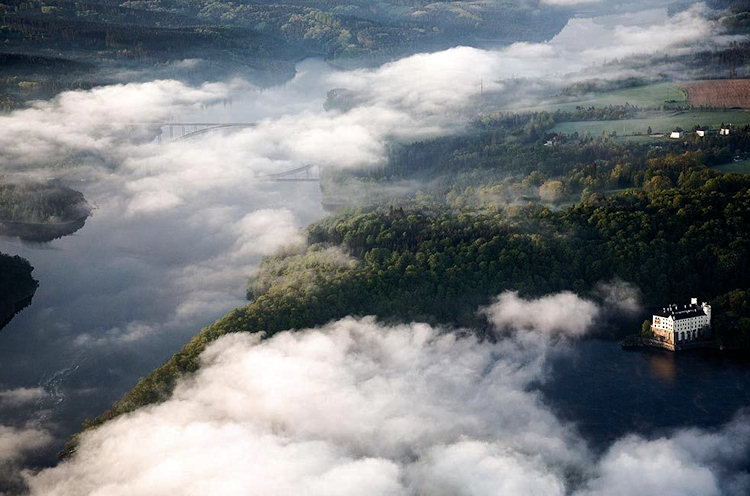 Замок Орлик – расположен на высокой скале, и по своему положению напоминает орлиное гнездо. Был он построен в XIII веке на 80-ти метровой скале как небольшая королевская крепость для охраны брода через Влтаву. После строительства Орлицкой плотины на Влтаве он превратился в замок на воде. После «бархатной революции» 1989 г. замок Орлик был возвращен дворянскому роду Шварценбергов, которому принадлежит и сейчас. В нём представлены коллекции оружия и наград рода Шварценбергов, подсвечники и посуда XV—XVII веков, старинные книги. Одним из самых ценных объектов старинной библиотеки является комплект из 4 книг, который существует в мире всего ещё в трёх экземплярах и называется «Le Musée Francais» («Музеи Франции»). Интерьер замка оформлен в стилях ампир, романтизм и новая готика.