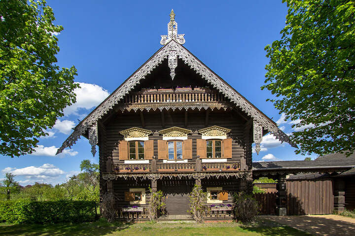 Поблизости расположена русская деревня Александровка. Появилась она в 1827 г, как подарок Александра I прусскому королю. В построенных здесь деревянных избах поселились 20 русских солдат-музыкантов. Рядом с избами располагались сады и огороды, насчитывающие около 500 фруктовых деревьев разных сортов. Солдатам разрешалось жениться на местных и, если рождался сын, то дом передавался по наследству. До сих пор здесь живут потомки русских поселенцев и на домах можно увидеть таблички с их фамилиями. Помимо домов, была построена церковь Ал. Невского. С 1999 г комплекс находится под охраной ЮНЕСКО.