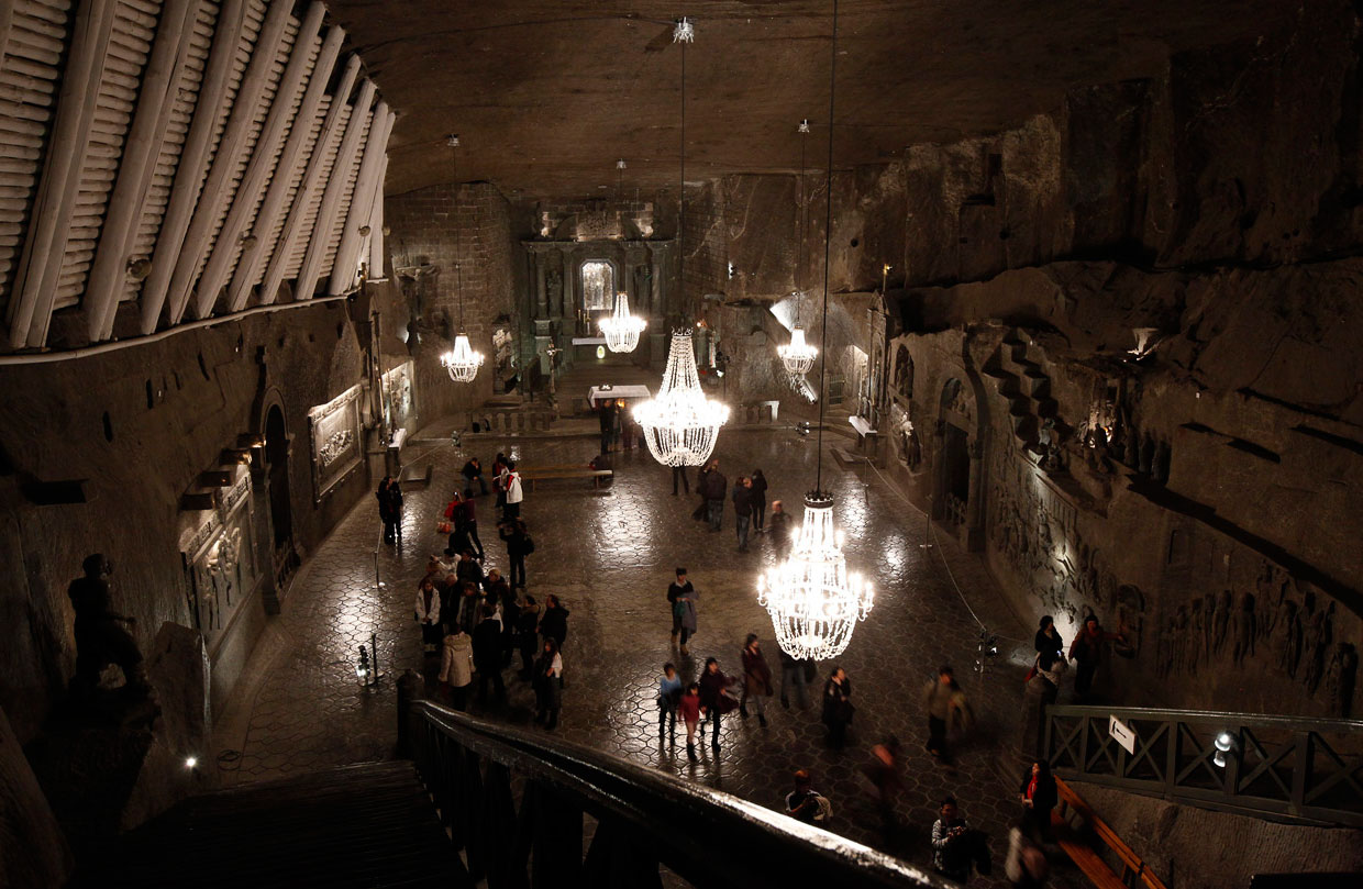 Соляные шахты Величка относятся к объектам охраняемым ЮНЕСКО и находятся всего в 10 км к юго - востоку от Кракова. Они образовались естественным путем, на месте, где много лет назад было море. Соль здесь стали добывать уже в XIII веке. Спустившись на глубину 135 метров можно увидеть всю технологию добычи соли. Протяженность шахт составляет более 200 км, они представляют собой галереи, коридоры, часовни, камеры, скульптуры, подземное озеро с очень соленой водой, расположенные на уровне от 57 м до 198 м. Начиная с XV века, экскурсии проводились по соляным шахтам только с разрешения короля. А начиная с XIX века, первые доктора стали прописывать курс лечения соляными ваннами.