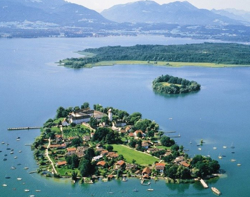 Переезд на самое большое живописное озеро Баварии, расположенное у подножия Альп- Кимзее, посреди которого, на острове, Людвиг II Виттельсбах, именуемый так же «Лебединый Король» разбил парк и построил самый дорогостоящий и роскошный дворец из всех своих творений под названием Херренкимзее. Вдохновился король для создания этой своей фантазии французским Версалем, но то, что ему удалось создать, производит несравнимо более сильное впечатление, нежели Бурбонский оригинал. Золотая зеркальная галерея, залы Войны и Мира, неописуемой роскоши Парадный Будуар, Фарфоровый зал и многое другое потрясают до глубины души. Частью экспозиции является также Музей "Короля-сказочника" Людвига Баварского.